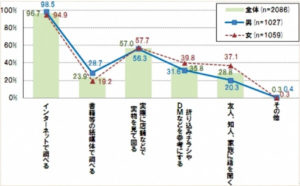これは、弊社が、gooリサーチ登録モニター2,107人に、購入時に情報収集する媒体を調査したものです。(複数回答可)情報収集に、インターネットを利用している人の割合は、全体で96,7%でした。ネット調査ということを考慮しても、多くの人がインターネットで情報収集をしていることが分かります。